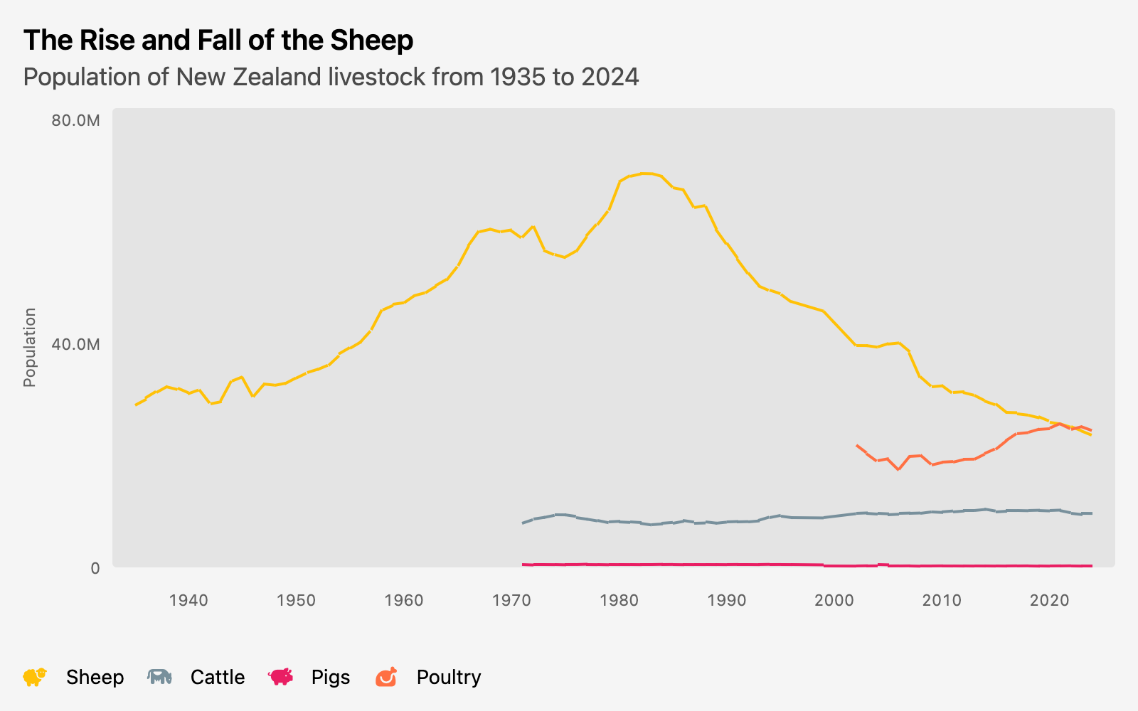 This week’s dataset is on New Zealand agriculture, complete with this quote from a May 2025 article: